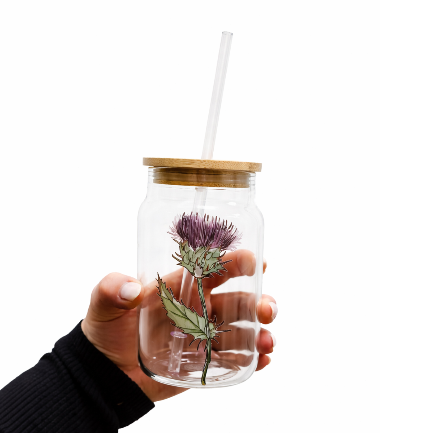 Elevate your everyday rituals with the Thistle Glass Tumbler. Featuring a delicate thistle illustration and a natural bamboo lid, this glass cup is made for slow mornings, mindful sips, and effortless style.